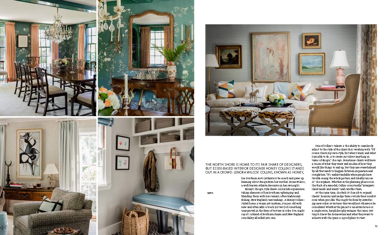 Northshore Home Magazine / Winter 2008The North Shore is home to its fair share of designers, but Essex-based interior designer Honey Collins stands out in a crowd. Lenora Wilcox Collins, known as Honey has Southern roots...